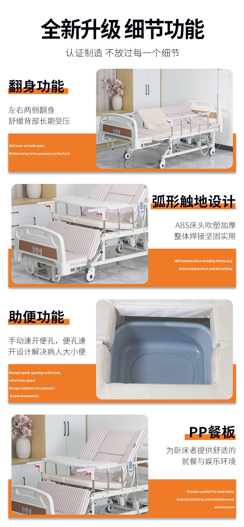 標(biāo)準(zhǔn)配置:ABS床頭1副;鋁合金折疊護(hù)欄1副;靜音輪4個(gè)