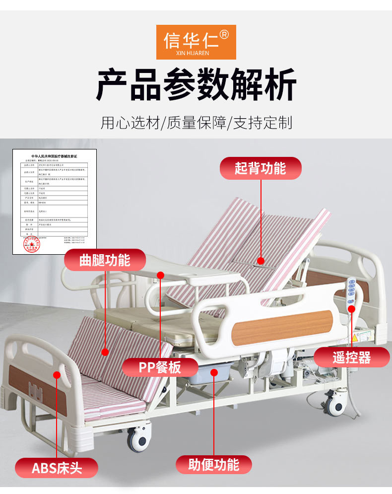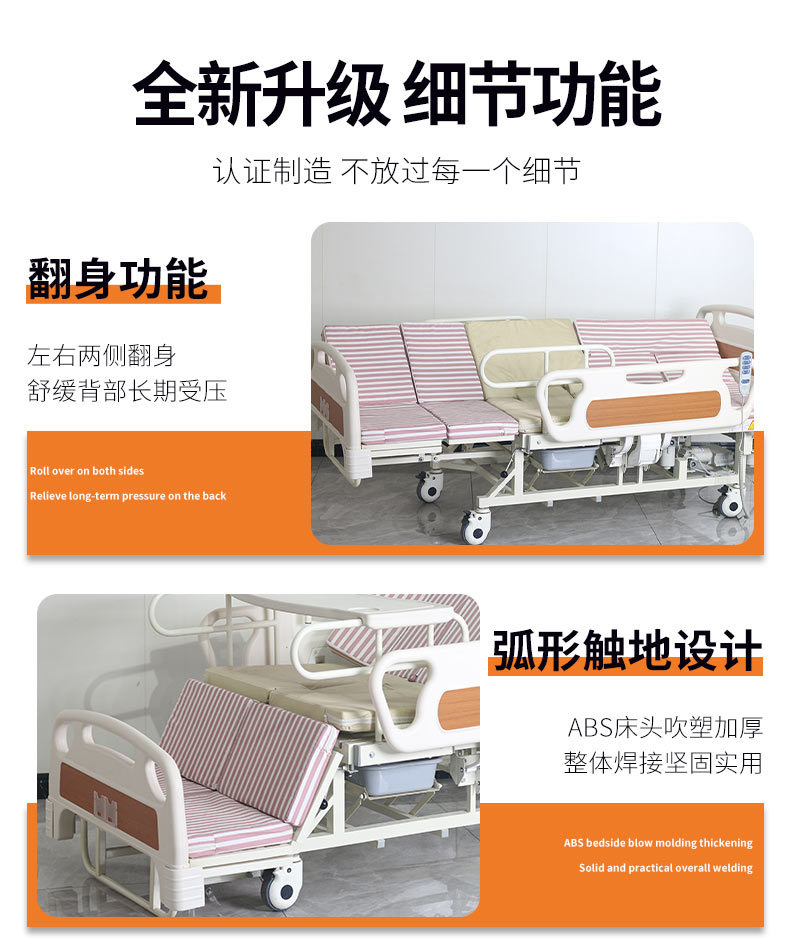 標(biāo)準(zhǔn)配置:ABS床頭1副;PP護(hù)欄一副;靜音輪4個;輸液架1支;
