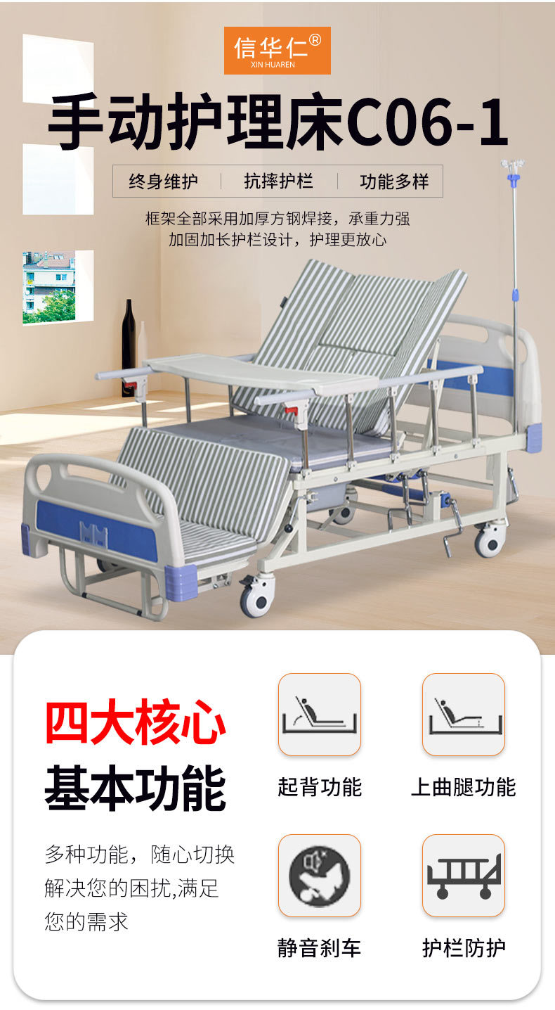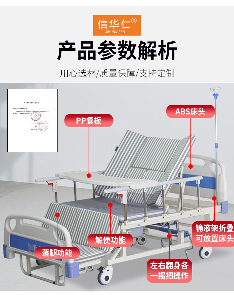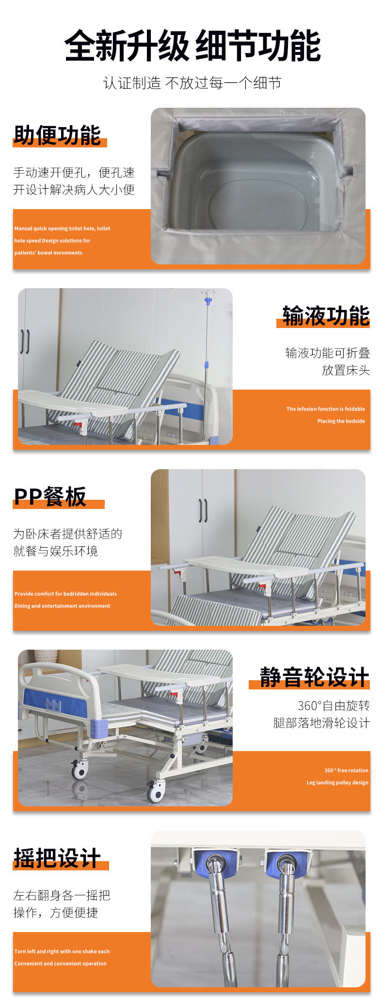 標(biāo)準(zhǔn)配置:ABS床頭1副;鋁合金折疊護(hù)欄1副;靜音輪4個(gè);